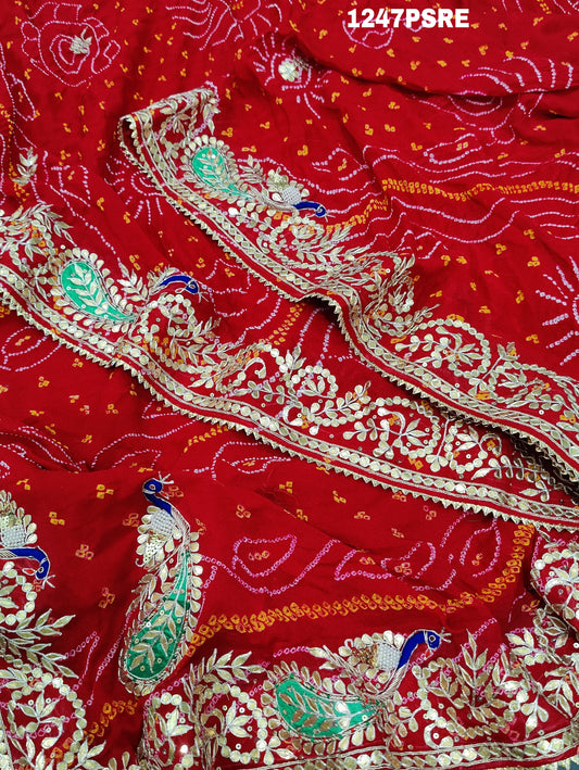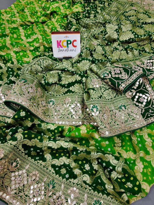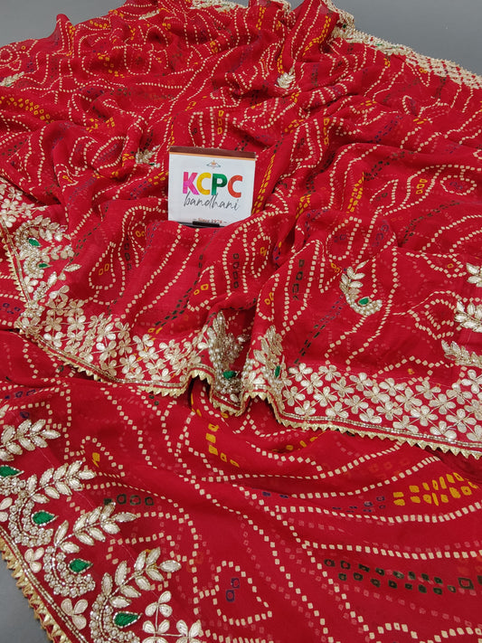 KcPc New Pure Ojariya Heavy Gota patti Handwork Bandhani Saree,MAD