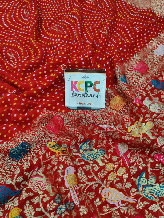 KcPc Exclusive Designer Jaipuri Bandhej Weaving Saree in Pure Georgette Banarasi Neemzari Pattern MKS