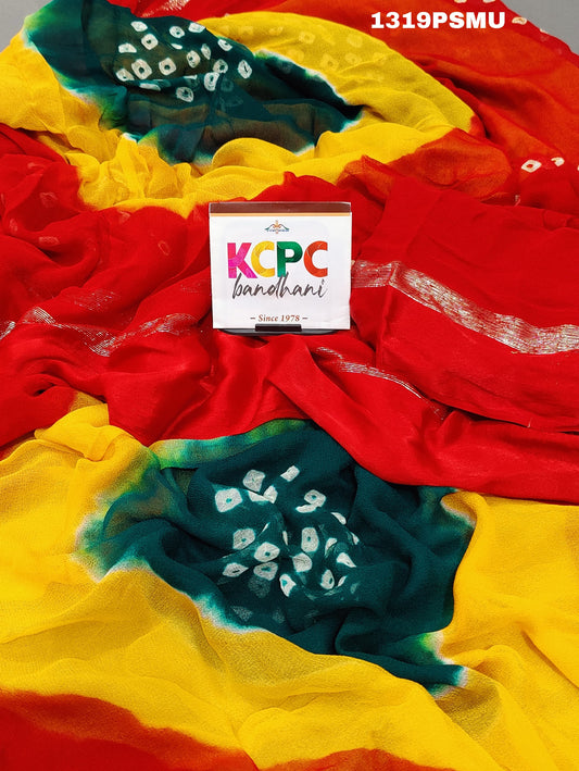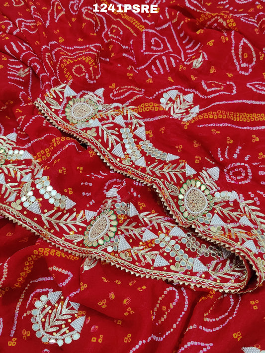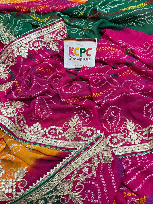 KcPc Latest Georgette Pachrangi Bandhani Gotapatti Saree With Blouse,MHS