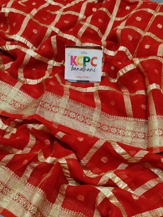 Pure Georgette Banarasi Gharchola Red Tone Karwachauth Special Saree with Blouse pf