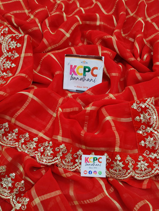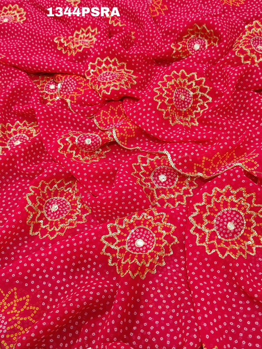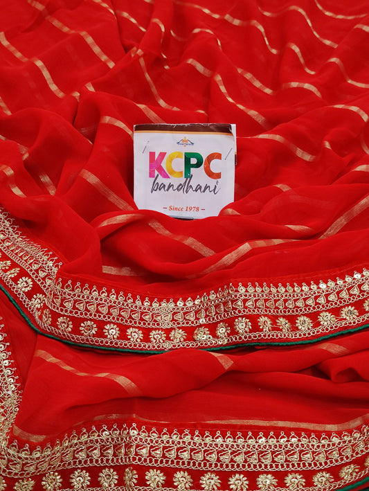 KcPc Beautiful Pure khadi Georgette cutdana Gota patti Handwork Bandhani saree,AMT