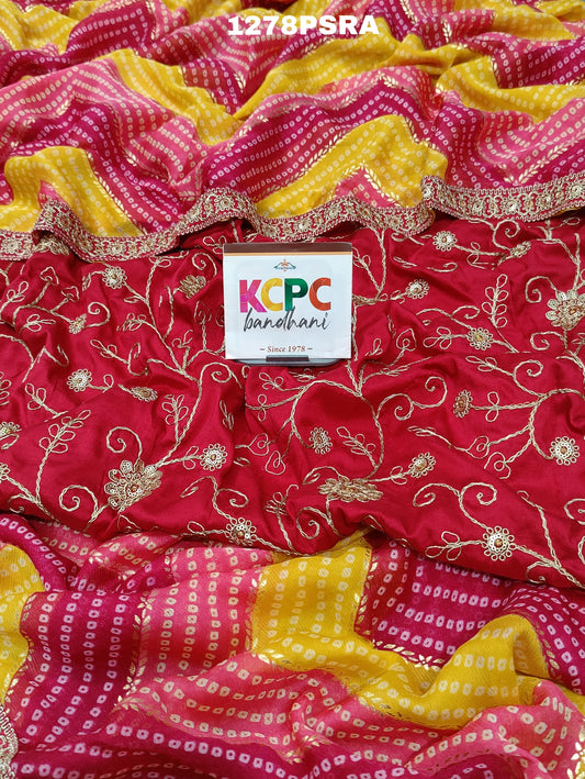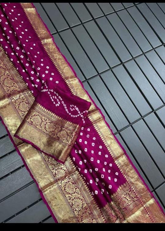KcPc Beautiful New Design Pure Gaji silk Bandhani gharchola pallu Saree