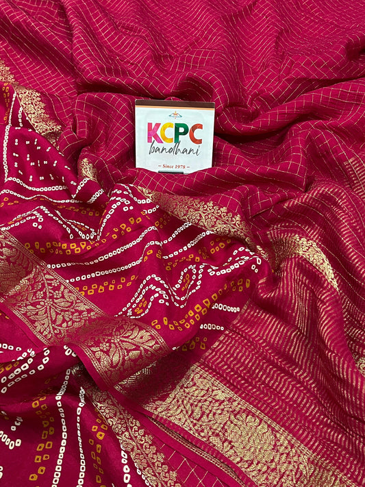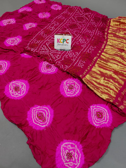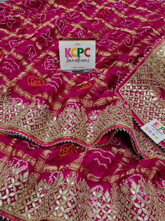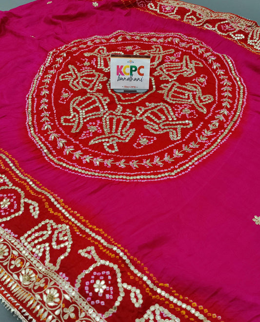 KcPc Exclusive Designer Jaipuri Gaji Silk Ghatchola Bandhej Saree with luxury Gotapatti work