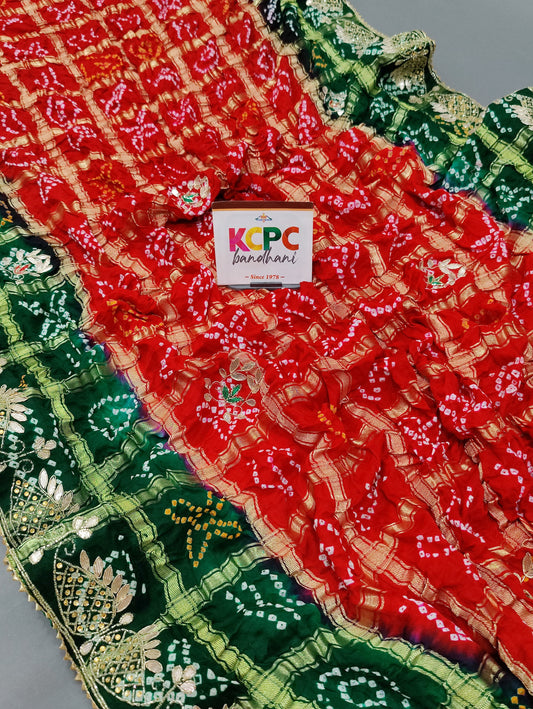 KcPc Latest New Pure Gaji Silk Bandhani Ghatchola Gota Patti Work Saree with Blouse KCPC, Amt