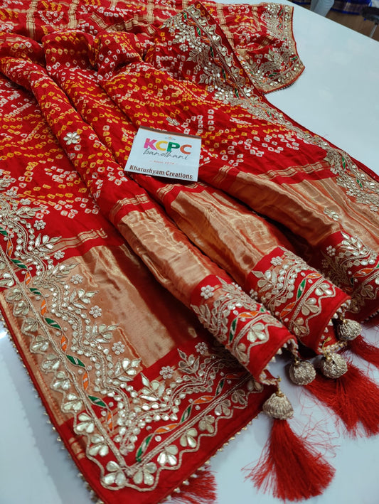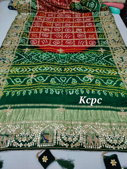 Pure Gaji Silk Bandhani Ghatchola Hand Gotapatti Work Saree,KCPC,NR
