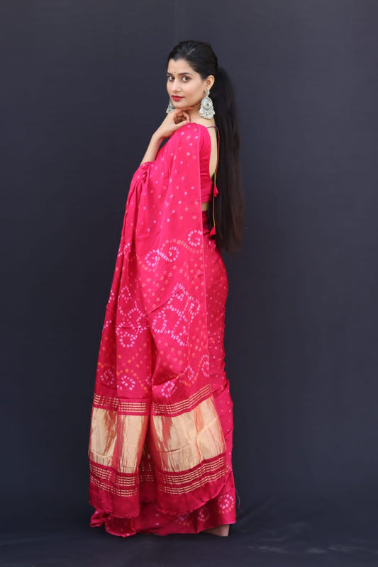 Pure Gaji Silk Bandhani Ghatchola Gotapatti Work Saree with blouse
