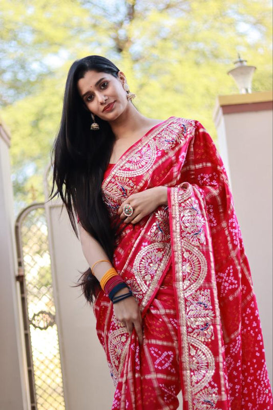 Pure Gaji Silk Bandhani Heavy Gotapatti Work Saree with blouse