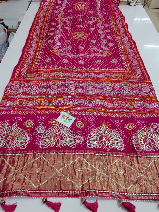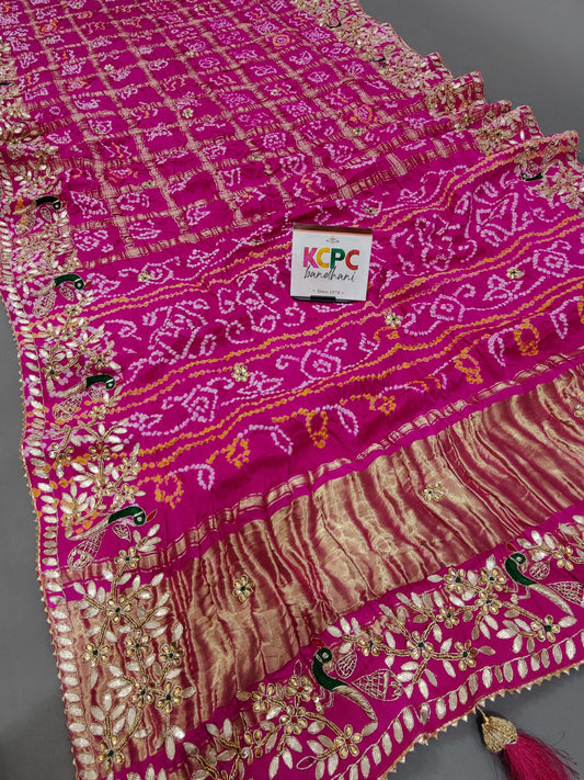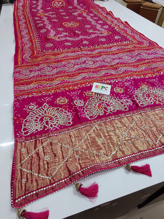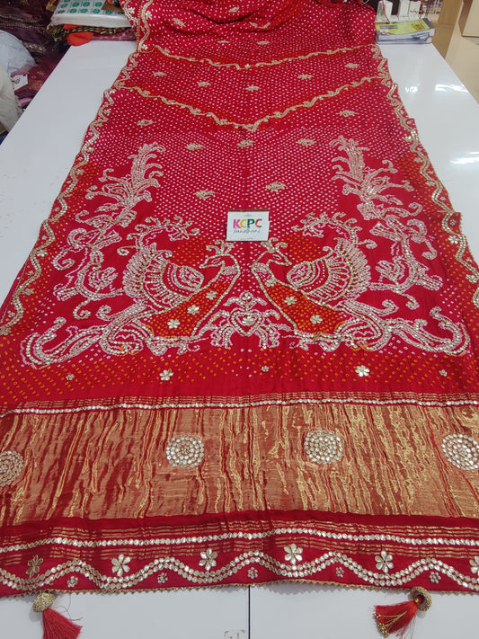 Pure Gaji silk Bandhani Mayur Heavy Gotapatti Work saree with blouse, KCPC, AMT
