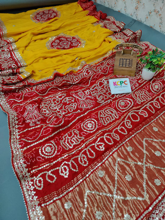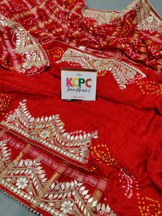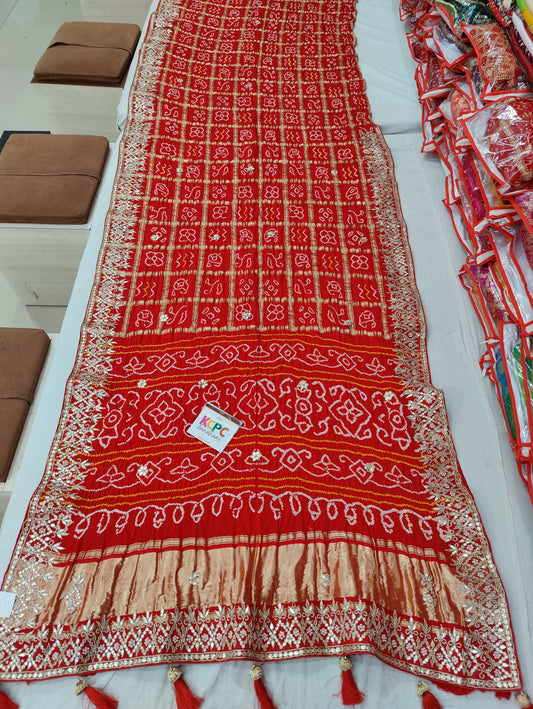 Pure Gaji Silk Bandhani Ghatchola Heavy Gotapatti Work Saree, KCPC, OR