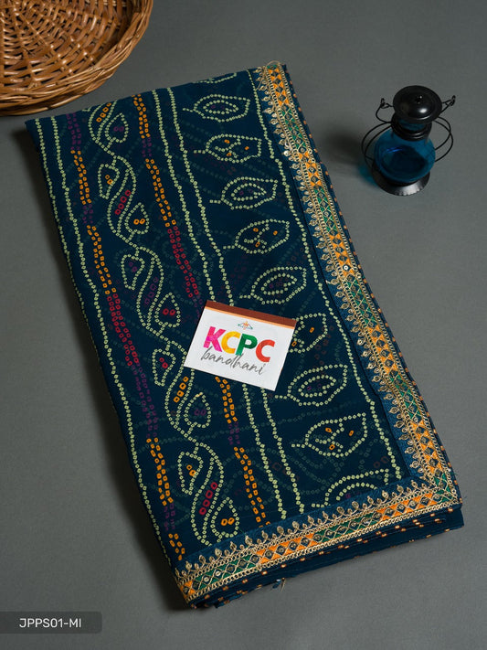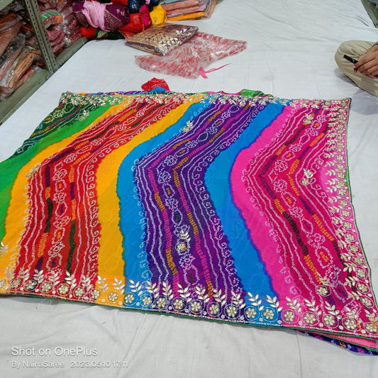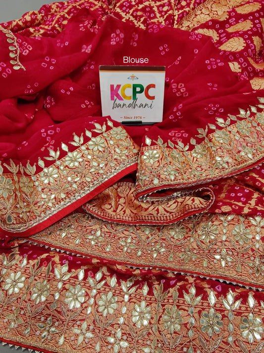 Pure Georgette Rajsthani Chunri Bandhej Gotapatti Work Saree, IR, kc