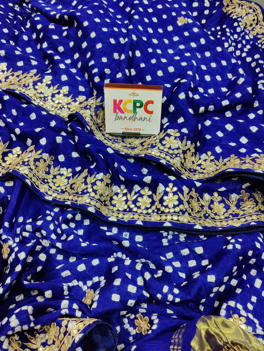 Latest New Pure Gaji Silk Bandhani Ghatchola Gota Patti Work Saree with Blouse KCPC, Amt