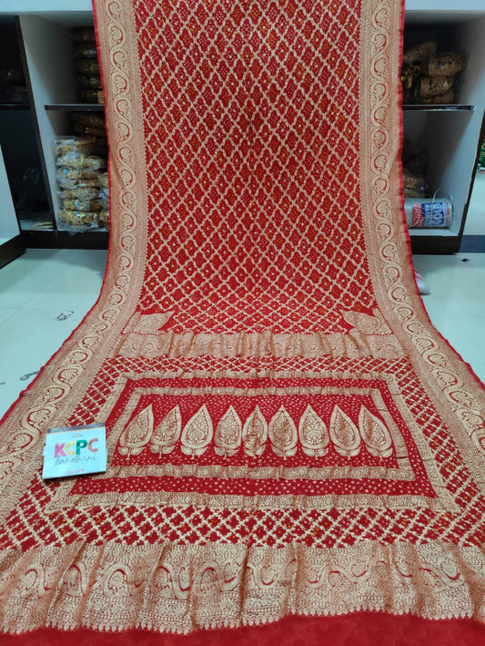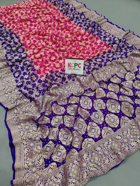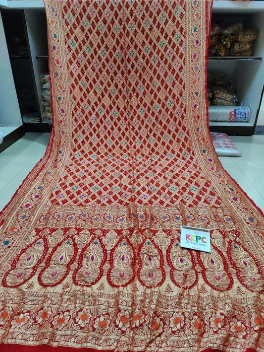 Pure Meenakari Khadi Georgette Upada Janglaw Bandhni Saree, KCPC, NR