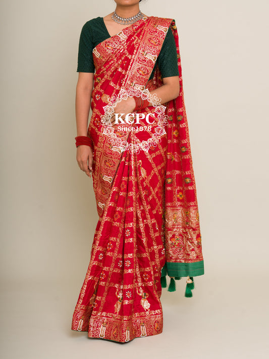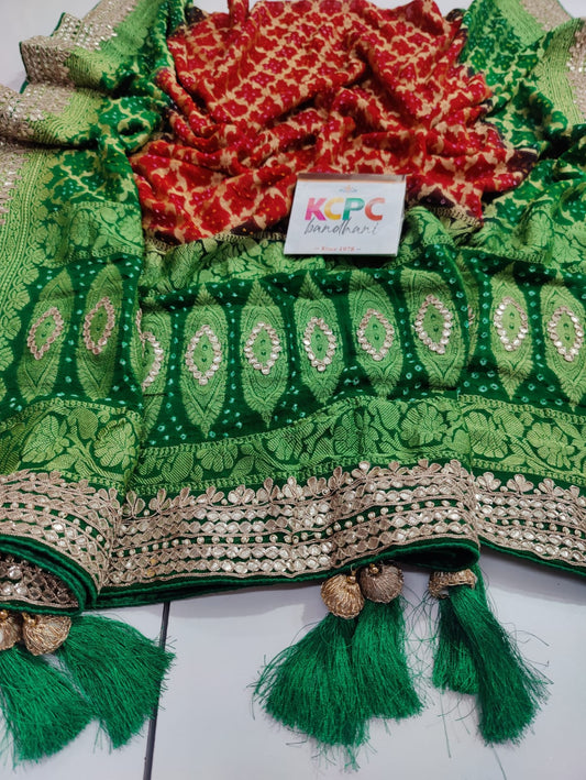 Pure Gaji Silk Bandhani Ghatchola Gotapatti Saree