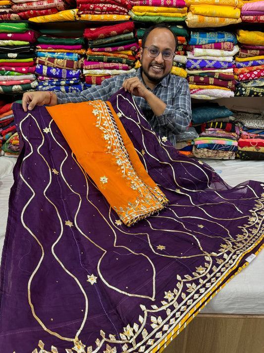 Pure Gaji Silk Bandhani Heavy Gotapatti Work Saree with blouse