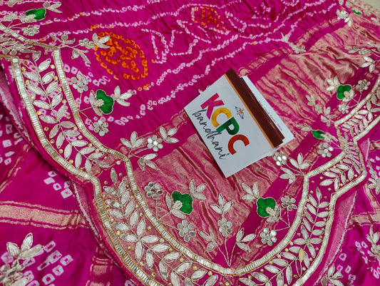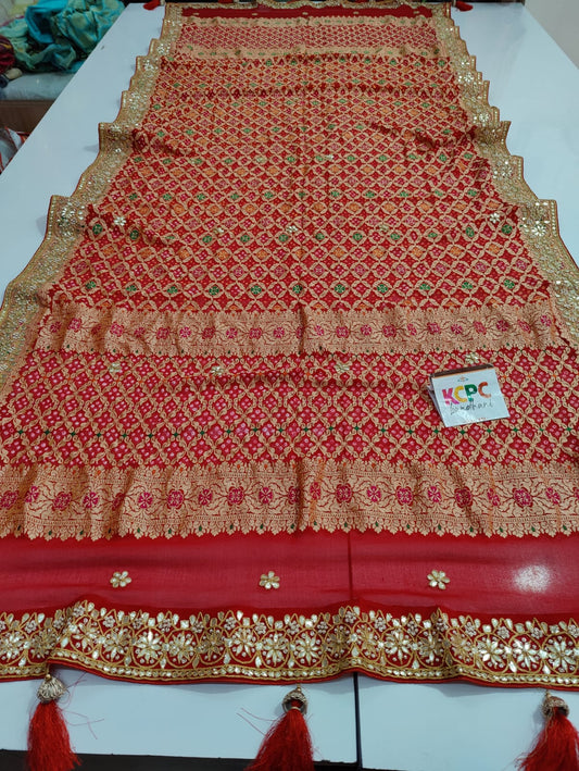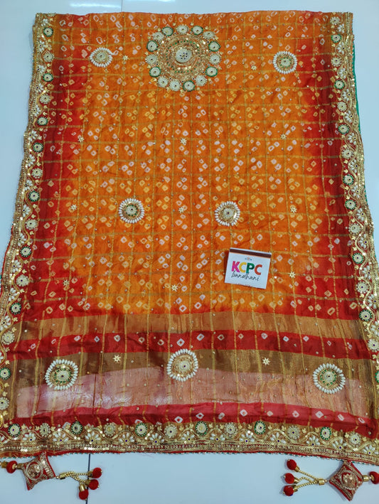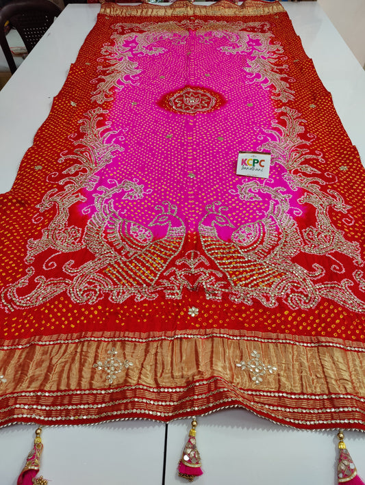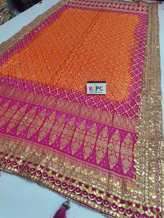 Pure Gaji Silk Bandhani Ghatchola Dupatta Heavy Gotapatti Work Bridal, KCPC, NR,