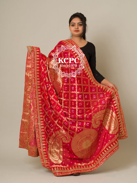 Pure Gaji Silk Bandhani Ghatchola Gotapatti Work Bridal Style Dupatta, KCPC, NR