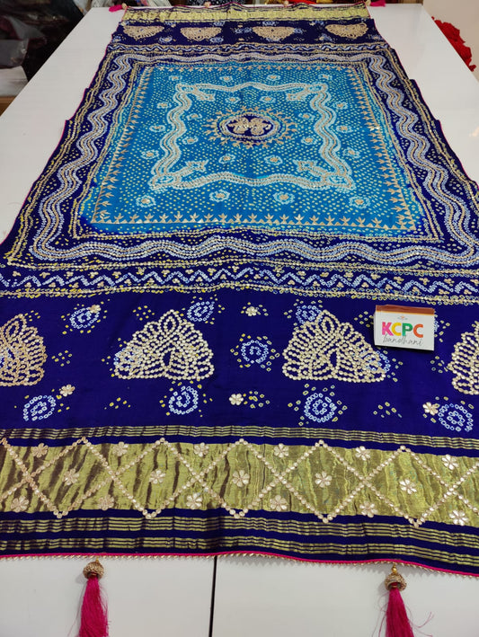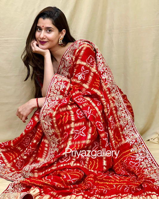 Pure Gaji Silk Bandhani Ghatchola Gotapatti Saree With Blouse