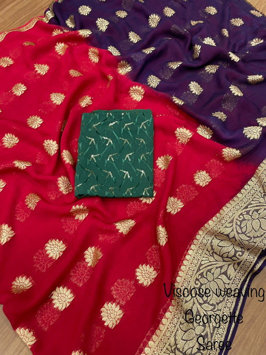 Soft Viscose weaving pure Georgette saree with zari self weaving