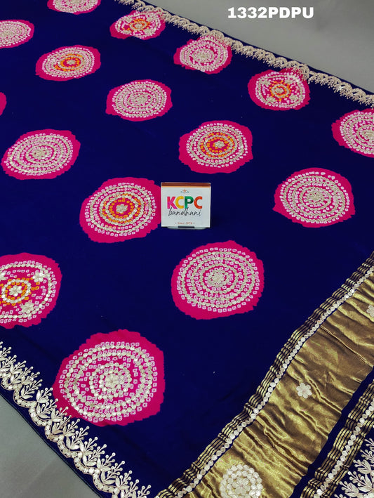 KcPc New Pure Gaji silk handmade Laddu bandhej Gotapatti Work Dupatta