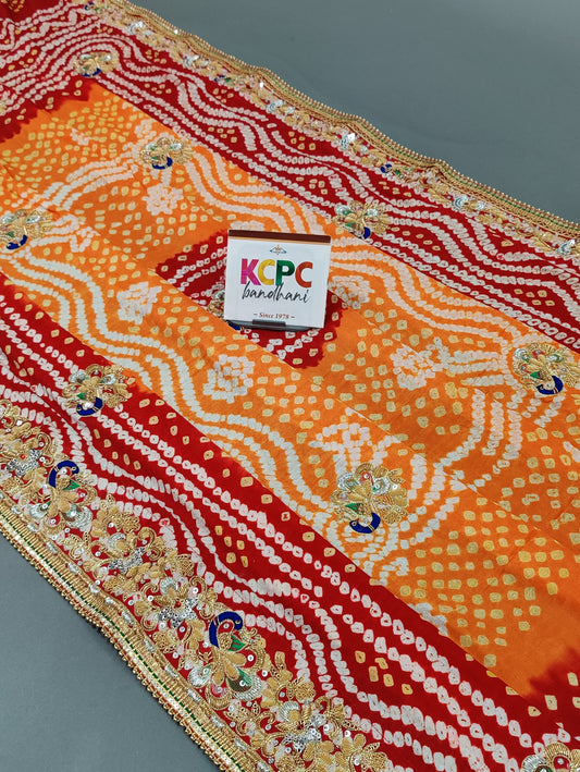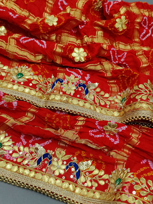 Pure Gaji Silk Bandhej Gotapatti Chunri Bridal Dupatta