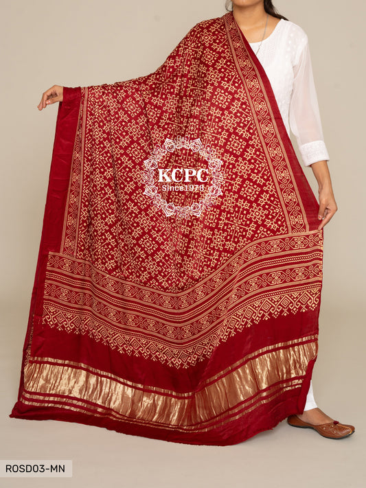 Gaji Silk Ajrakh Print Zig Zag Lagdi Patta Dupattas for heavy dresses and Lehengas , OR , KCPC