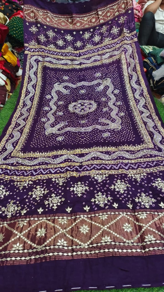 Pure Gaji Silk Bandhani Raidana Dupatta with Gotapatti Work