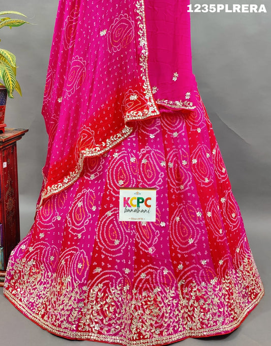 KcPc Pure Georgette Bandhani Print Cutdana nd Stone Work Lehenga, RTK