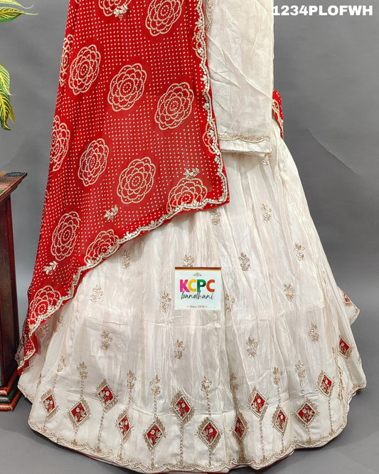 KcPc New Beautiful Pure Ojariya Chinon bandhani Gotapatti work Lehenga set,MAD