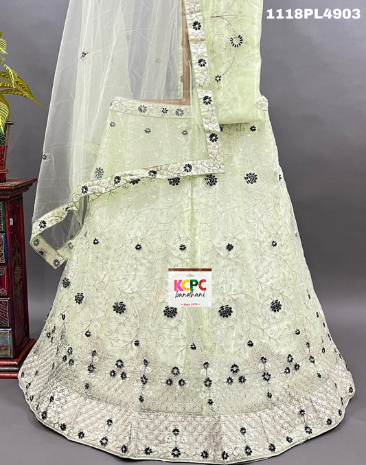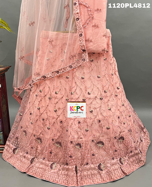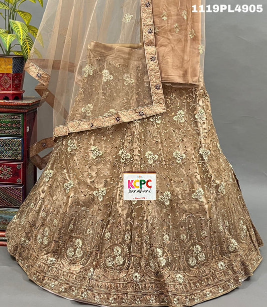 KcPc Pure Chinon Silk with Gaji silk Dupatta Cutdana Gotapatti Lehenga set,MAD