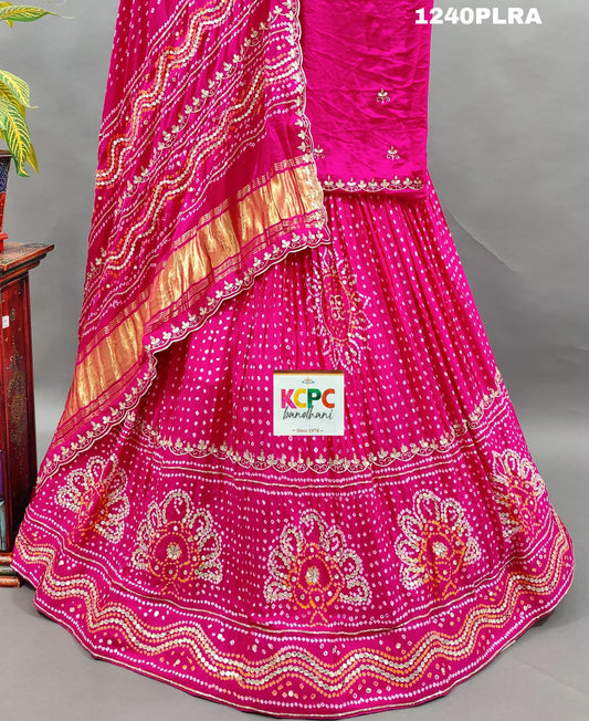 Kcpc Bandhej silk full stitched lahnga with heavy gotta Patti border,KML