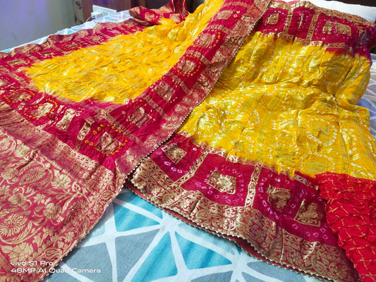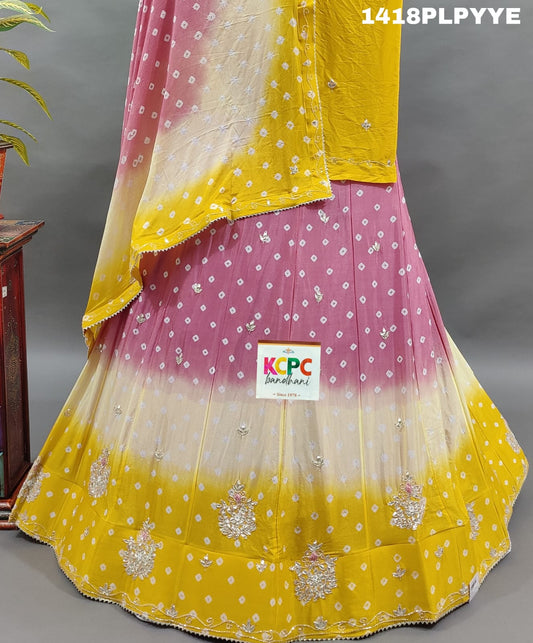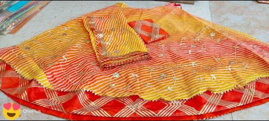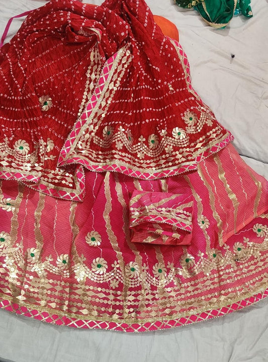 New Chinon Double Shade Bandhani Gota pati work Lehenga Set ,RAJ