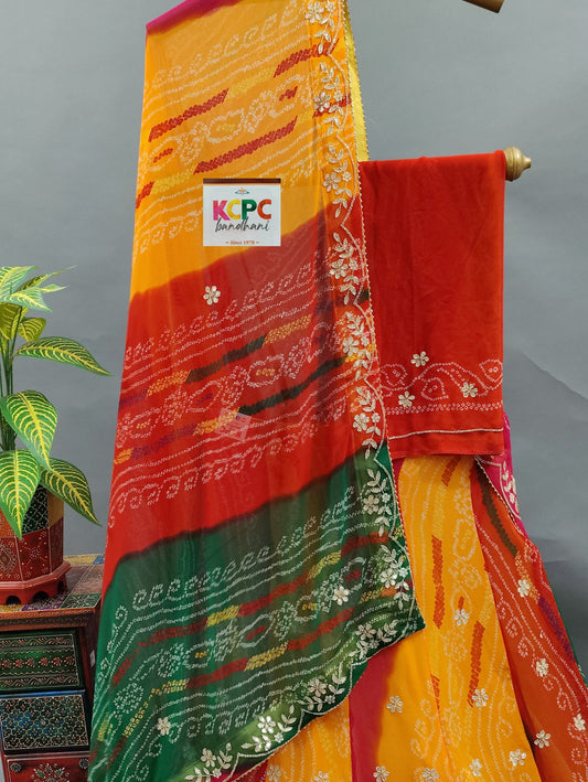 KcPc Pure Georgette Bandhani Print Cutdana nd Stone Work Lehenga, RTK