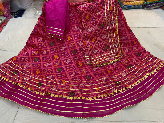 Latest New Pure Chinon Beautiful Jaipuri Bandhej Gotapatti work Lehenga Set,RAJ