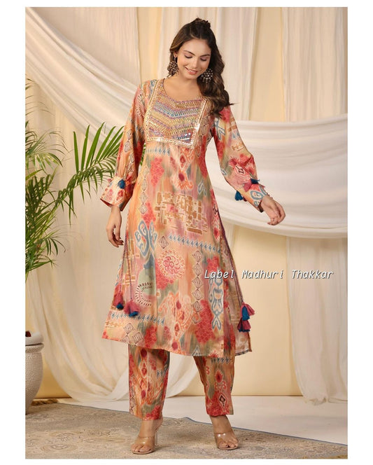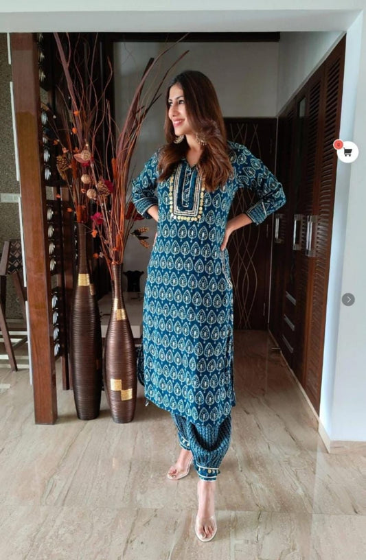 Beautiful pure Decorated With Print Hand Embroidery Kurti set, GS, NR