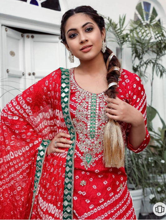 Art Silk Kurti With Patiala And Dupatta Set With Kundan Hand Work Kurti,GS,OR