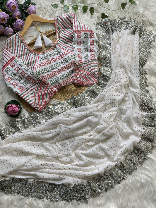 KcPc Launching New Pure MosChiffon Hand Pitta Aari Work Bandhani Saree,swa