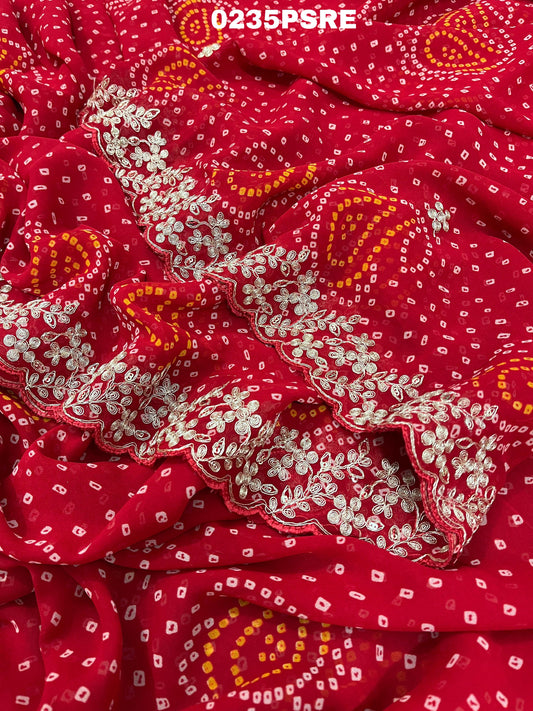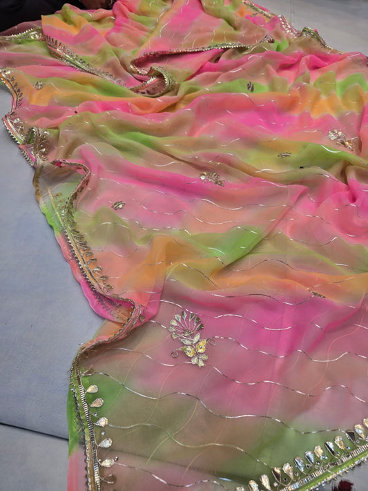 KcPc Latest Georgette Pachrangi Bandhani Gotapatti Saree With Blouse,MHS