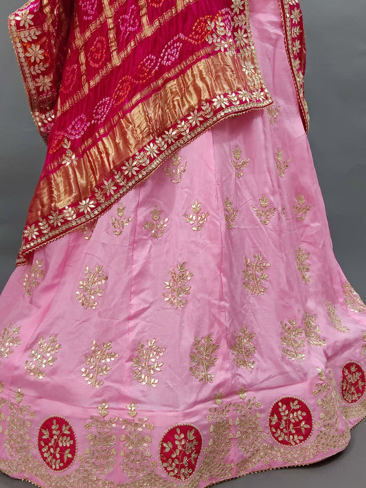 New Pure Upada Silk Zardoji Gotapatti Handwork Lehenga with pure gaji silk bandhani gharchola dupatta
