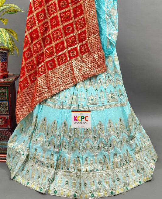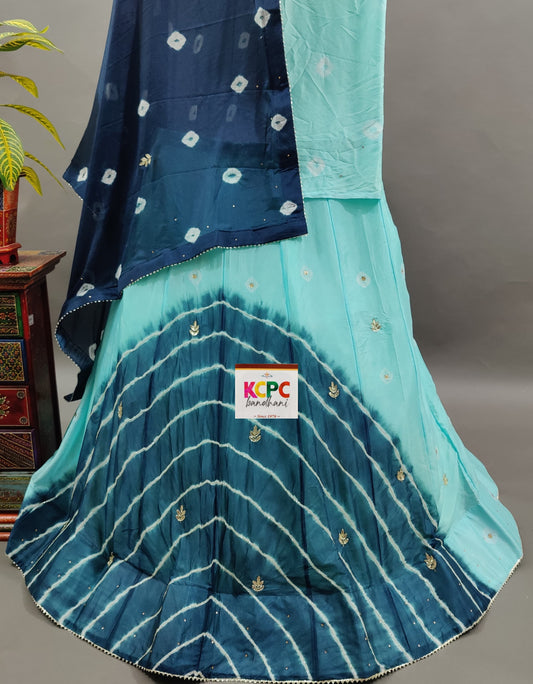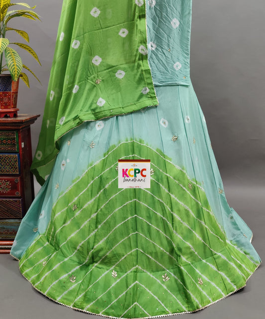 KcPc Latest New Launch Chinon Rajasthani lahariya bandhej design With Katdana Gotapatti Work Lehenga set,RAJ