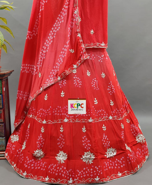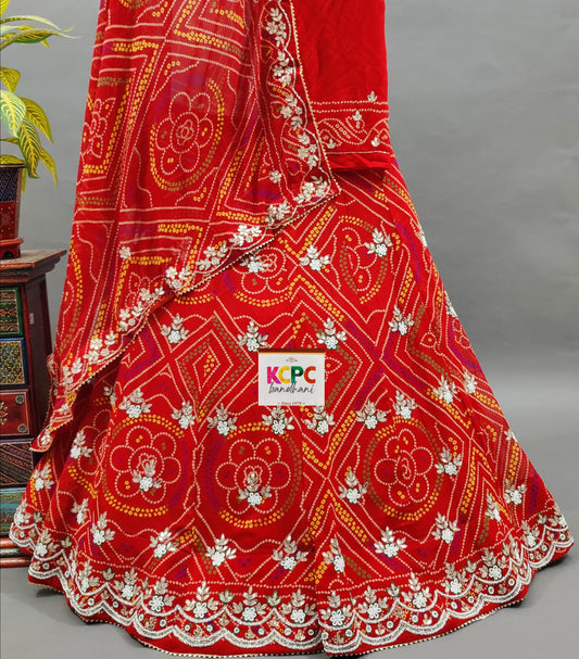 KcPc Exclusive New pure Georgette Bandhej With katdana Gotapatti Handwork jaipuri Lehenga set,KML