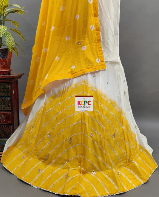 KcPc New launch Chinon Rajasthani Lahariya Bandhej Design With katdana Gotapatti Work Lehenga set,RAJ
