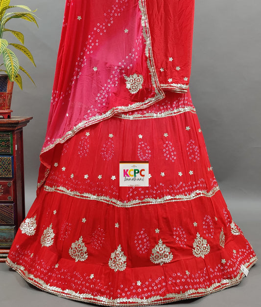 Latest New Pure Chinon Beautiful Jaipuri Bandhej Gotapatti work Lehenga Set,RAJ
