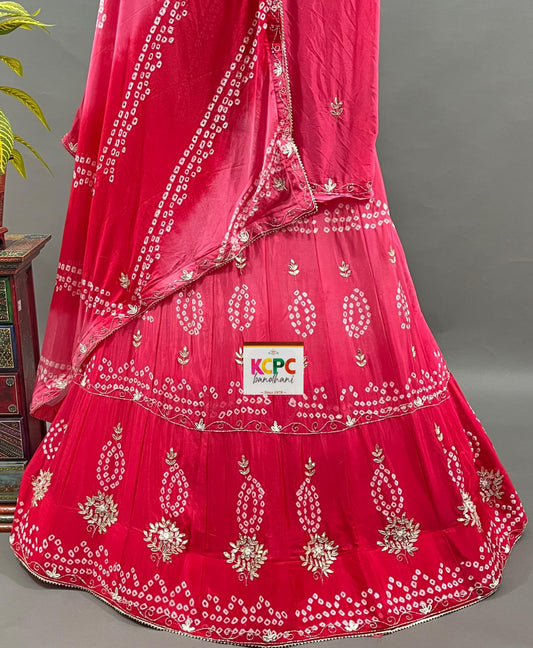 KcPc Latest New Launch Chinon Rajasthani Lahariya Bandhej Design With katdana Gotapatti Work Lehenga set,RNJ