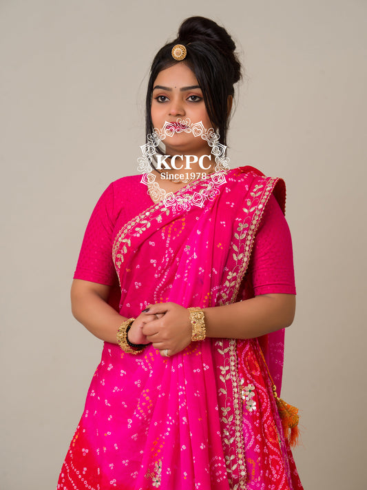 KCPC Special Pure Georgette Multi Colour Bandhani Leheriya Gotapatti Work Saree mhs