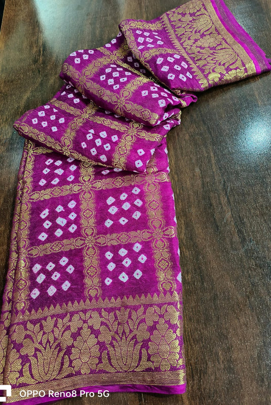 Pure Viscos Silk Bandhej Ghatchola Saree