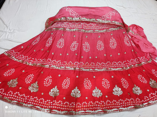 Pure Chinon Beautiful Jaipuri Handmade Bandhej Gotapatti Work Lehenga raj