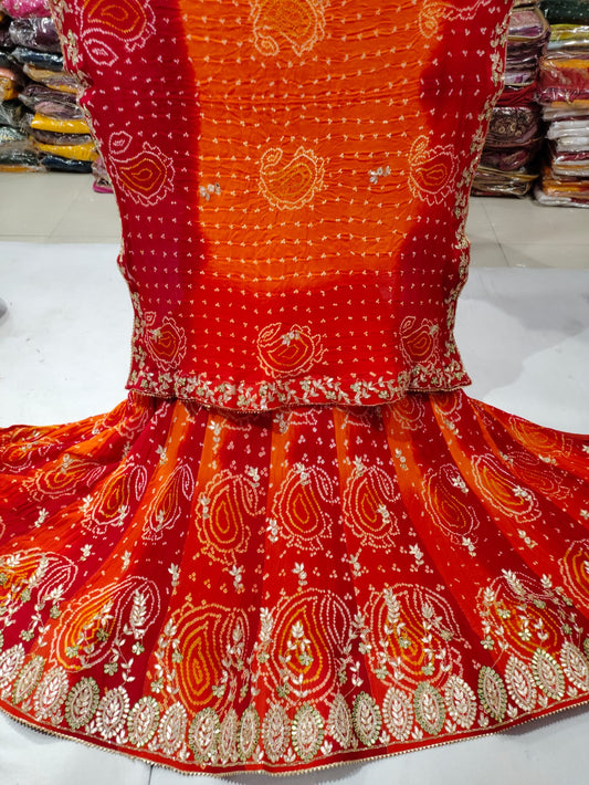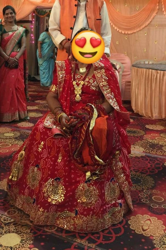Pure Rai Bandhej Cutdana Work lehenga,STH,NR