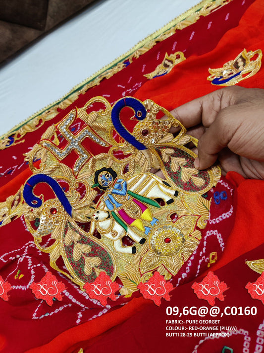 Rich Quality Hand Work Chunri Piliya Georgette Odhna,