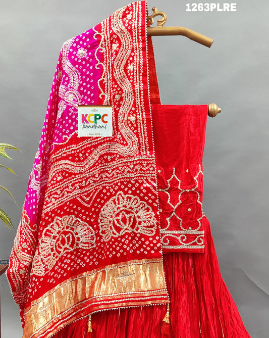 KcPc New Pure Gaji Silk lehenga With Bandhani Heavy Gotapatti Work Dupatta,RGC