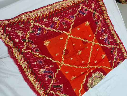 KcPc Rajasthani Marwadi Chunri dupatta stone work Handmade bandhej